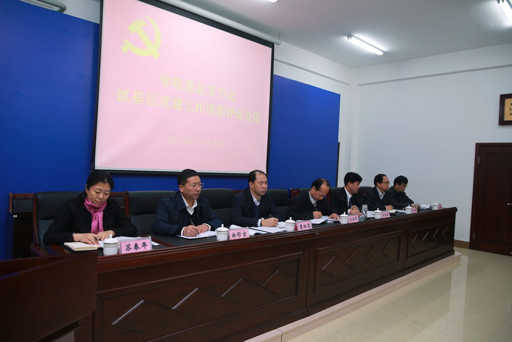 2016年12月28日上午 ,学院党总支书记抓基层党建工作述职评议会议在办公楼五楼会议室召开。省高校工委组织部正处级组织员刘桂军同志,学院领导班子成员,各党总支、直属党支部书记,全体副科级以上干部和部分教职工代表参加会议。会议由学院党委书记王喜库同志主持。