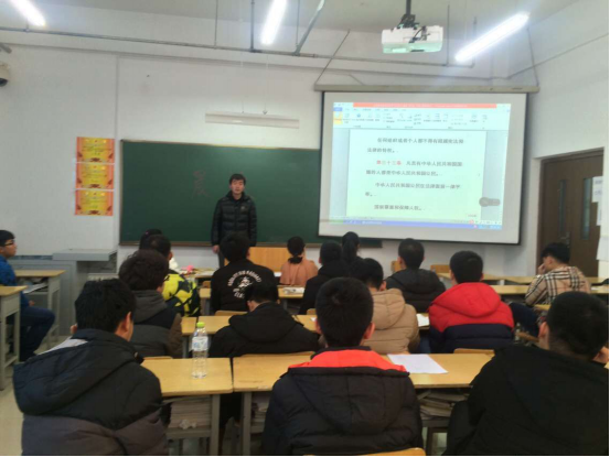 铁道工程技术3153班团支书正在为同学们介绍《宪法》内容