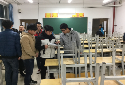 生活部副部长张尊涛正在对班级卫生情况评比情况进行检查