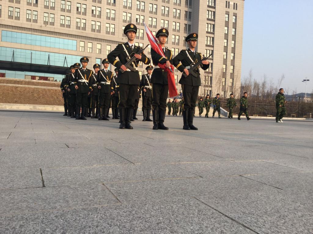 7:25,全体师生在教学楼前中心广场列队集合完毕。7:35,仪式正式开始。伴随着《歌唱祖国》的音乐声,国旗班护卫队将五星红旗护送入场。伴随雄壮的国歌生,鲜艳的五星红旗冉冉升起,全体师生庄严肃立,面向鲜艳的五星红旗行注目礼。