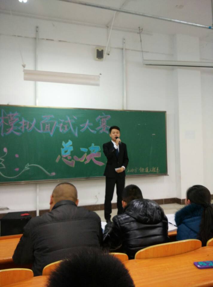 铁道工程系于12月11日下午6点举行了“模拟面试比赛”。系辅导员蔡丽梅、魏嘉良;系学生会干部王淇石、金龙泽、李建强、李文正出席了本次比赛。