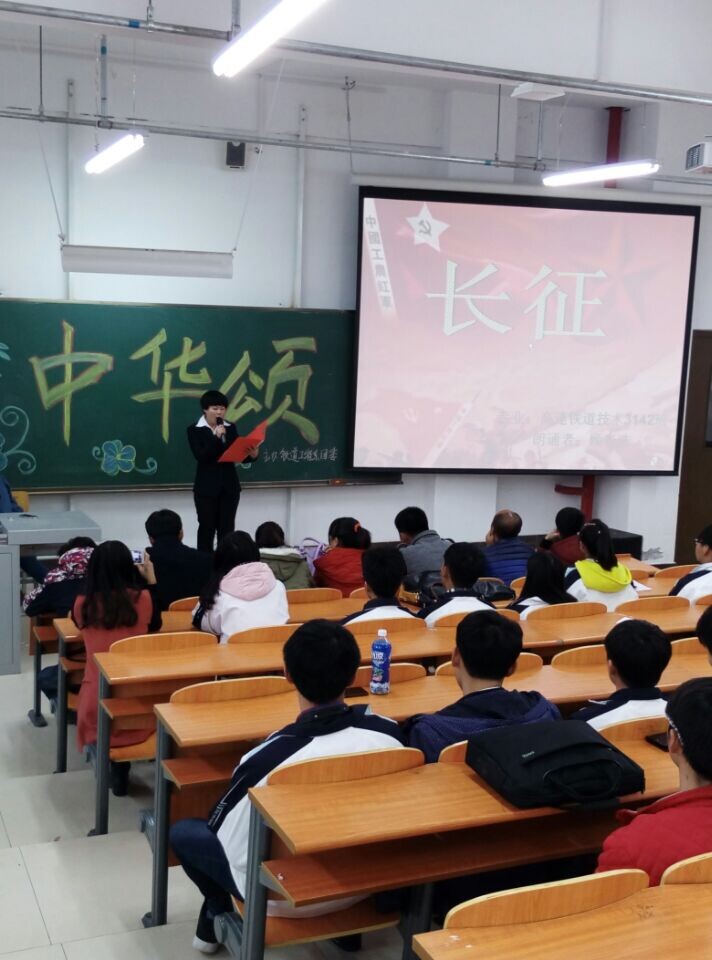 为了让同学继承和发扬中华民族红色精神和学习中国优秀古诗文,铁道工程系团委举办了《中华颂》这次活动。此次朗诵比赛于11月10日下午在202阶梯教室如期举行,取得了圆满成功。出席此次活动的有铁工教研室刘全、张志勇老师,以及院学习部部长刘欣易,院团委宣传部部长杨丽,系生活部副部长姜昊,系文艺部副部长于笑晗等七位学生干部,并担任演讲比赛的评委。