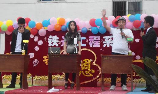 为了丰富同学们的校园生活,增强大学生的感恩意识,营造文明向上的校园氛围。5月15日晚,吉林铁道职业技术学院西校区篮球场雷鸣般的掌声、呐喊声伴随着缕缕暖意飘了出来,以“雅安,我们心在一起·感恩”教育为主题的小品大赛在经过一个星期的紧张筹备后终于拉开帷幕,以“感恩的心”哑语舞蹈为大赛开场更加映衬了我们的主题“感恩”。系党委马建华书记、办公室李东侠主任、道桥办公室刘宇主任、团委张鑫书记、王忆导员、蔡丽梅导员、史闯老师、张伟老师、刘玉欣老师等应邀参加,担任评委,全体学生会干部应邀担任嘉宾,与大一全体学生共同观看演出。张书记做了热情洋溢又亲切地开幕词,拉开了本次活动的序幕。