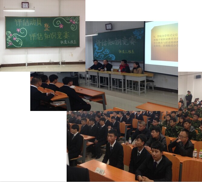 2014年10月22日17时,在教学楼西201教室由铁道工程系团委主办的“评估动员暨评估知识竞赛”在一片热烈的掌声中拉开了帷幕。