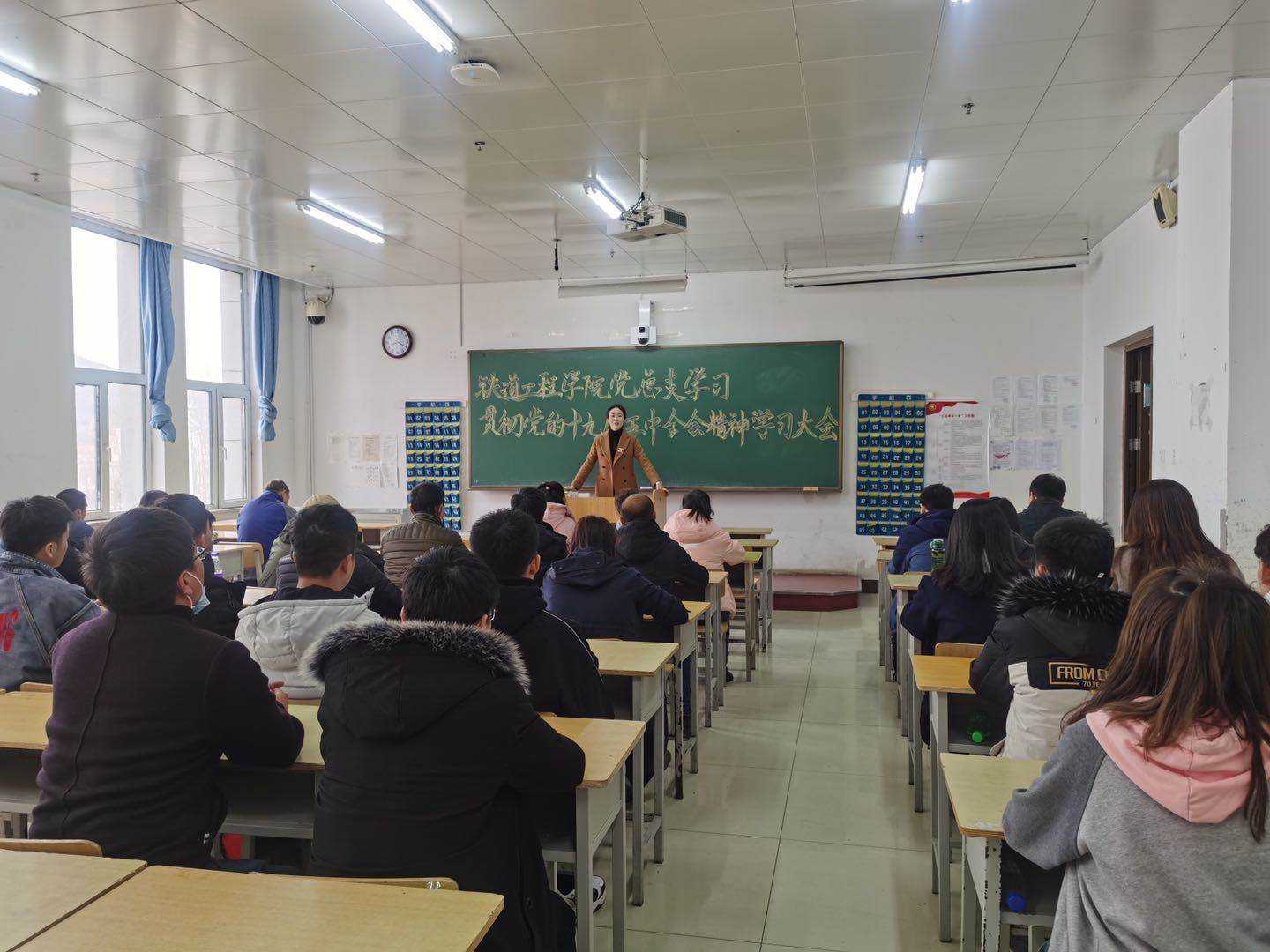 11月6日,铁道工程学院党总支组织全体教师和部分学生代表在教学楼209教室召开集体学习会议,认真传达学习党的十九届五中全会精神,对党总支抓好学习宣传和贯彻落实工作作出部署安排。