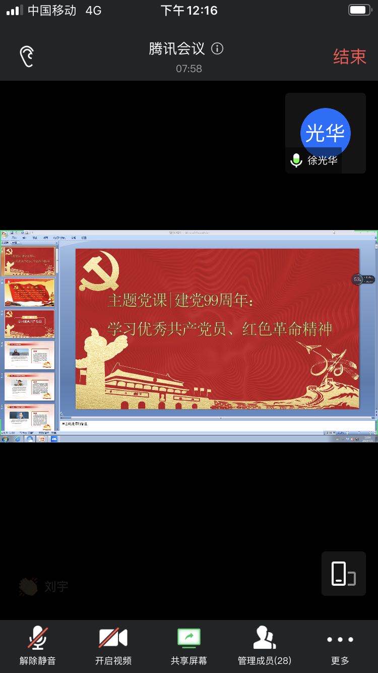 在建党99周年纪念日到来之际,铁道工程学院教工党支部以线上的形式开展“学习优秀共产党员、学习红色革命精神”主题党课活动。本次党课主讲人是铁道工程学院院长、教工党支部书记徐光华,学院全体党员参加。