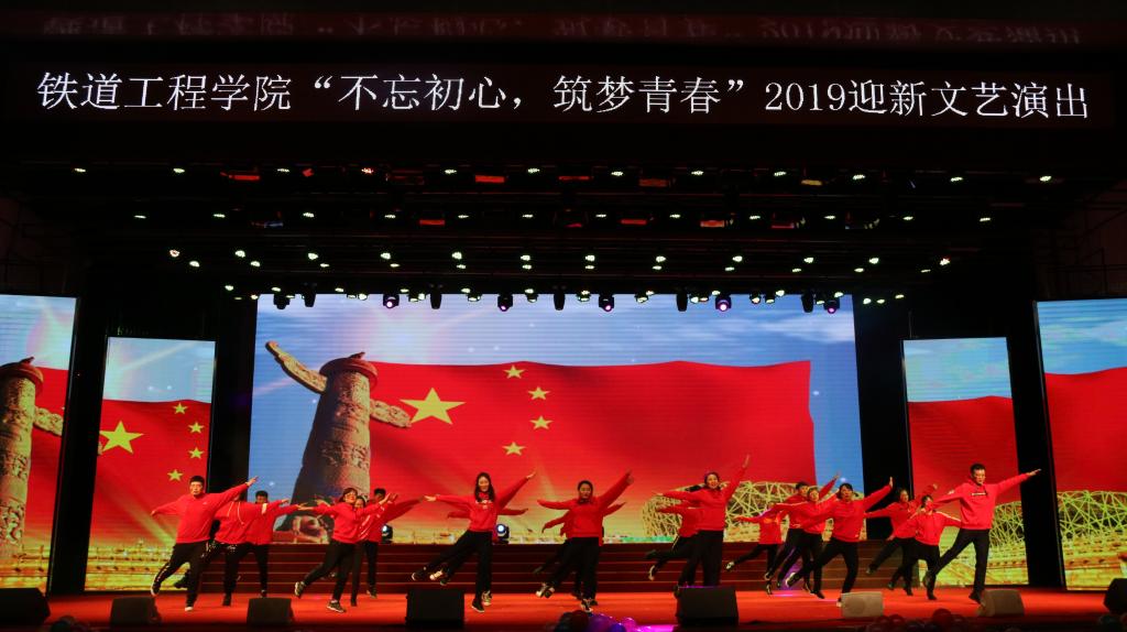 文艺演出在炫酷民舞小组的开场舞表演《盛世欢歌》中拉开帷幕,全场的气氛从一开始就被带动起来。宇宙虽大我们的爱却异常闪烁,未来虽远但却遥遥可期,悦唱青春小组带来的歌曲串烧《大田后生仔》、《光年之外》让我们看到青年学生身上的青春与活力。文艺演出的舞台不仅仅属于充满活力的同学们,闫晶、秦育洁等学院师生与同学们合作为大家带来精彩的舞蹈《与时代共舞》让我们看到属于教师不一样的风采。本次文艺演出内容丰富多彩,工程学子们在舞蹈《98k》、《zero》动感的音乐节拍中舞动青春尽显朝气蓬勃,中国舞《左手指月》向在场观众展现了中国古典舞的精彩魅力,使在场的观众大饱眼福,小品《文明出行》让学生们在捧腹中更加明确安全出行的重要性,师生联唱中张慧茹、张营、王帅宇、王威四位老师与学生联合为新生们倾情献唱《宁夏》、《同桌的你》等,给大家带来了一场视听的盛宴。情景剧《铁道兵之与国同行》以铁道兵前辈故事为例,为新生诠释了老一辈铁道兵“逢山开路、遇水架桥”的无私奉献和奋勇拼搏精神,内容发人深思,情节令人潸然泪下,可谓笑点与泪点并存。最后铁道工程学院17级学生干部带来的舞蹈串烧《初心耀青春》更是深受同学们喜爱,将全场气氛带入高潮,现场响起阵阵掌声和呐喊。