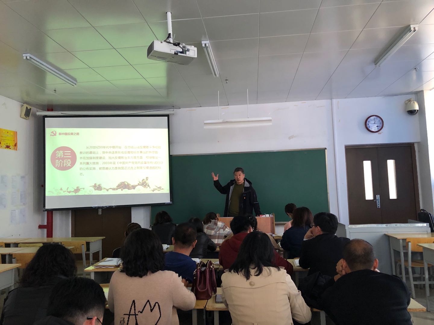 课上,徐光华院长分别从廉政概述、反腐倡廉的必要性和意义、新中国反腐之路、反腐倡廉新要求、谈教师反腐等五个方面生动讲解了廉政党课。勉励大家做人要有责任感、大局观、集体荣誉感,要有真诚之心、谦让之心、宽容之心,要有勤学善思的意识、真抓实干的本领、真诚合作的态度。同时,徐光华院长要求大家要全面深入学习贯彻习近平新时代中国特色社会主义思想和党的十九大精神,切实增强“四个意识”、坚定“四个自信”、做到“两个维护”。坚定不移推进全面从严治党,要时刻紧绷廉洁自律这根弦,把教书育人与自我修养结合起来,为建设国内一流、国际知名的特色高水平职业技能型大学贡献每个人的智慧和力量。