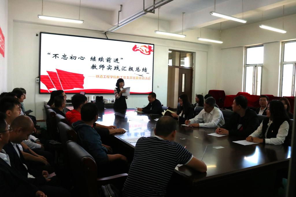 9月20日下午,铁道工程学院教工党支部在2号实训楼301室举行主题为“不忘初心 继续前进”暑期教师实践汇报主题党日活动,本次党日活动旨在推进党建与业务工作相融合,强化教师队伍建设,加快青年教师成长。青年教师张坤、洪慧鹏、李春静分别作为暑期顶岗实践代表,围绕顶岗实践工作心得体会展开汇报。人事处干事张建东,铁道工程学院党总支副书记韩兵兵、院长徐光华、教工党支部全体党员及非党员教师、全体学工教师参加此次汇报会。