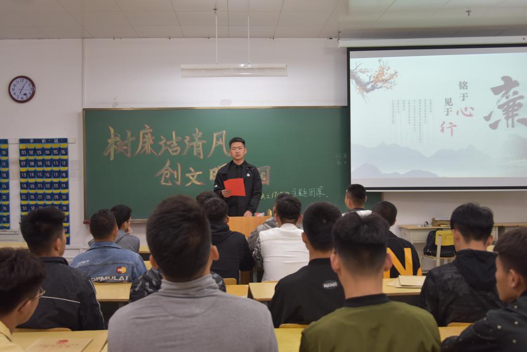 开展一次廉洁教育主题团日活动。组织各班级开展了“树廉洁清风 创文明校园”为主题的团日活动,由“工程青年崇廉社团”负责进行了学习宣讲,提高了广大学生廉洁自律的能力和意识。最后各班级学生签订了表廉洁决心的“廉洁自律倡议书”。