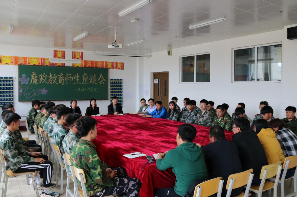 召开一次廉政教育师生座谈会。通过本次廉政教育师生座谈会,时刻提醒大家要廉洁从政,廉洁从教,廉洁从学,持之以恒,正风肃纪,将廉政建设工作落实到底,杜绝任何形式上的腐败,积极作为,自觉维护风清气正的吉铁院政治生态环境。铁道工程学院全体师生必将更加廉洁修身,弘扬廉政精神。