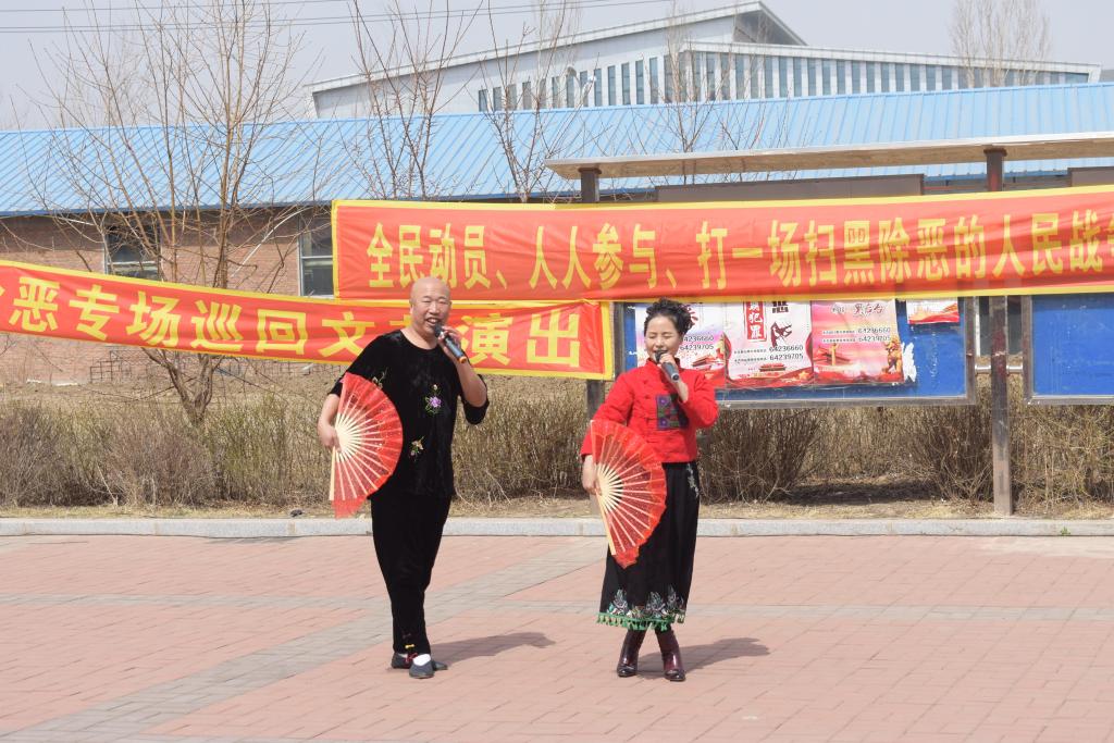为深入推进全县平安建设、反邪教和扫黑除恶专项斗争工作进程,进一步提高广大群众对“十个没有”平安建设、反邪教和扫黑除恶专项斗争工作的知晓率和参与率,2019年4月22日,铁道工程学院团委配合永吉县委宣传部,同洋草沟党支部开展“扫黑除恶”文艺宣传党团共建活动。