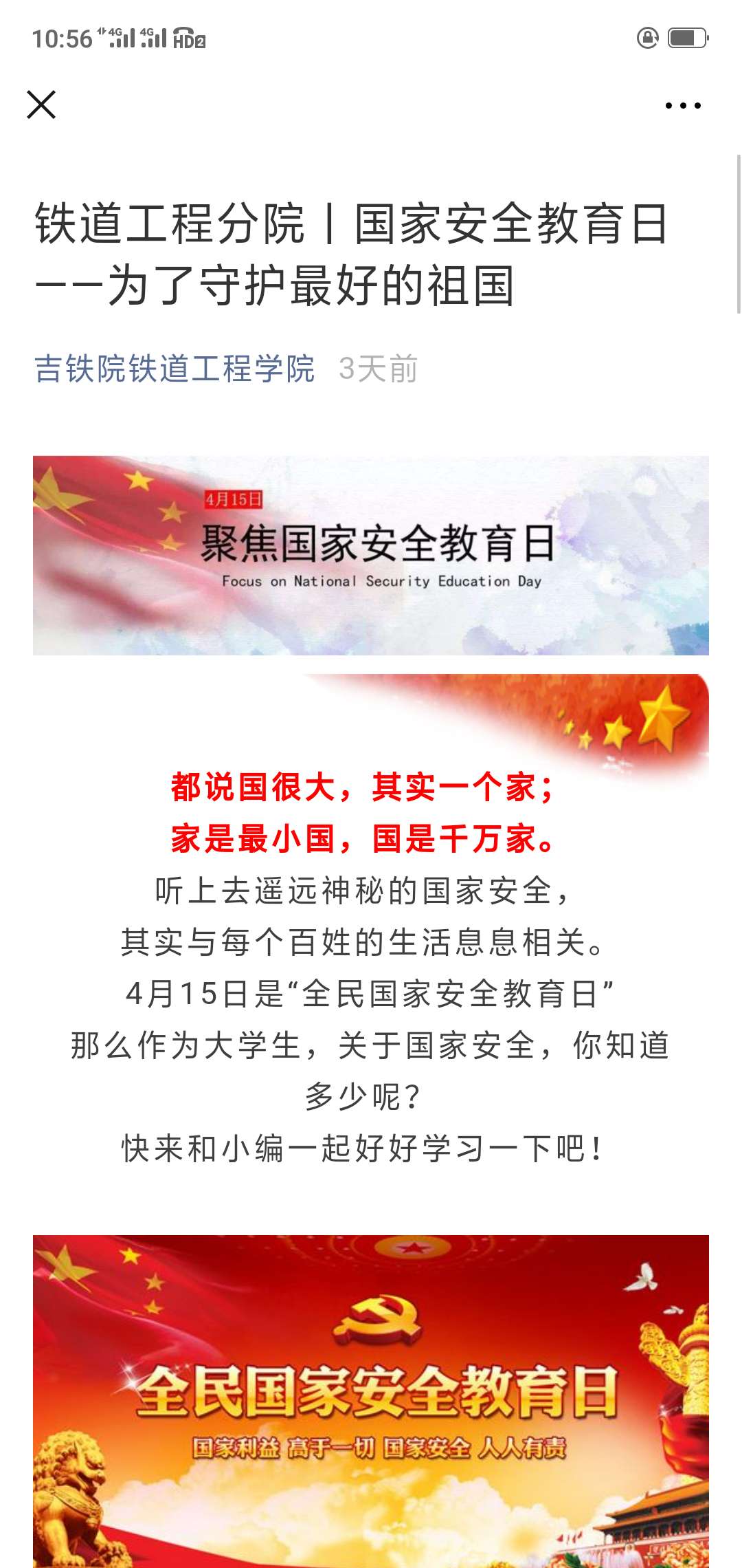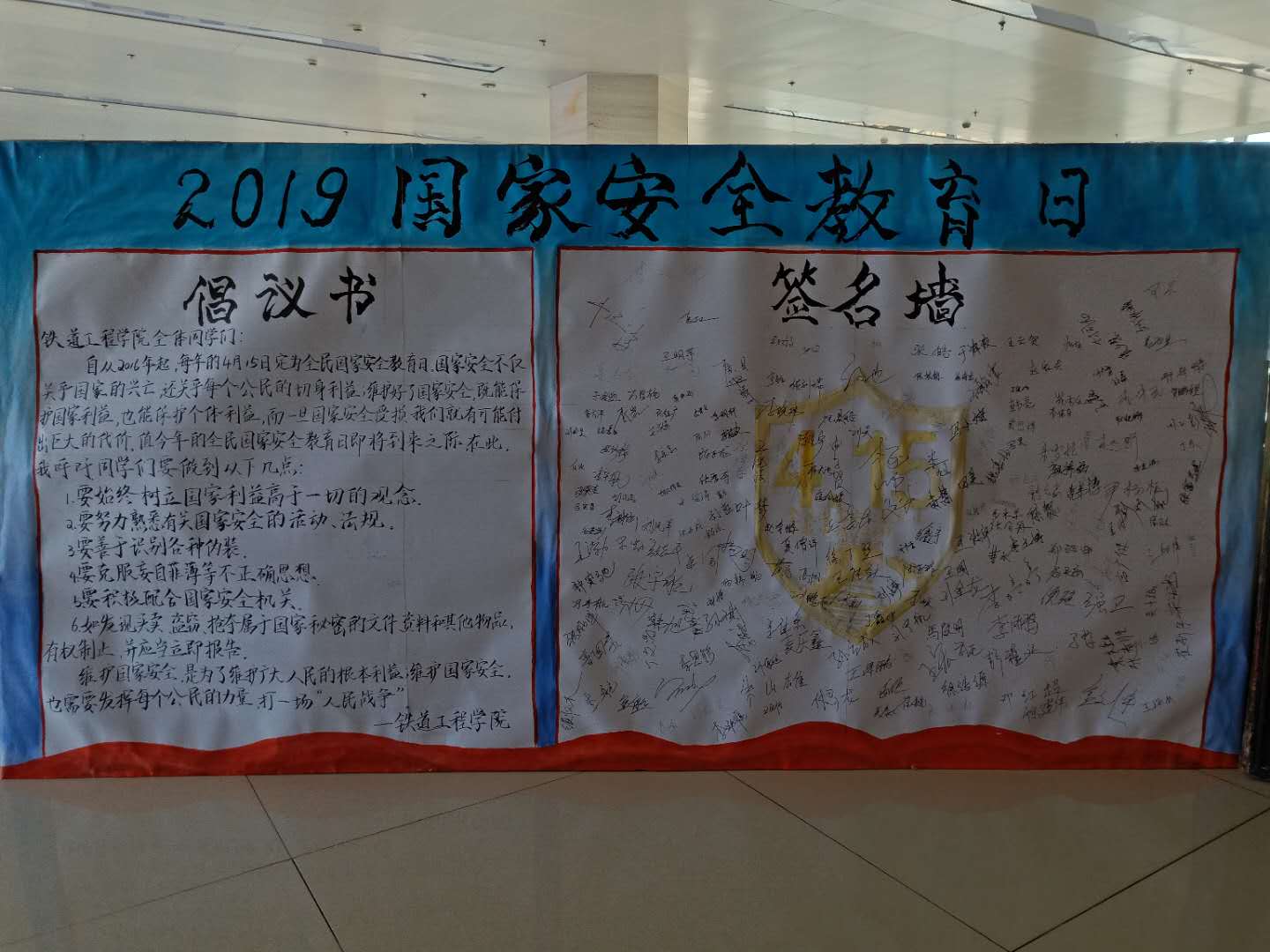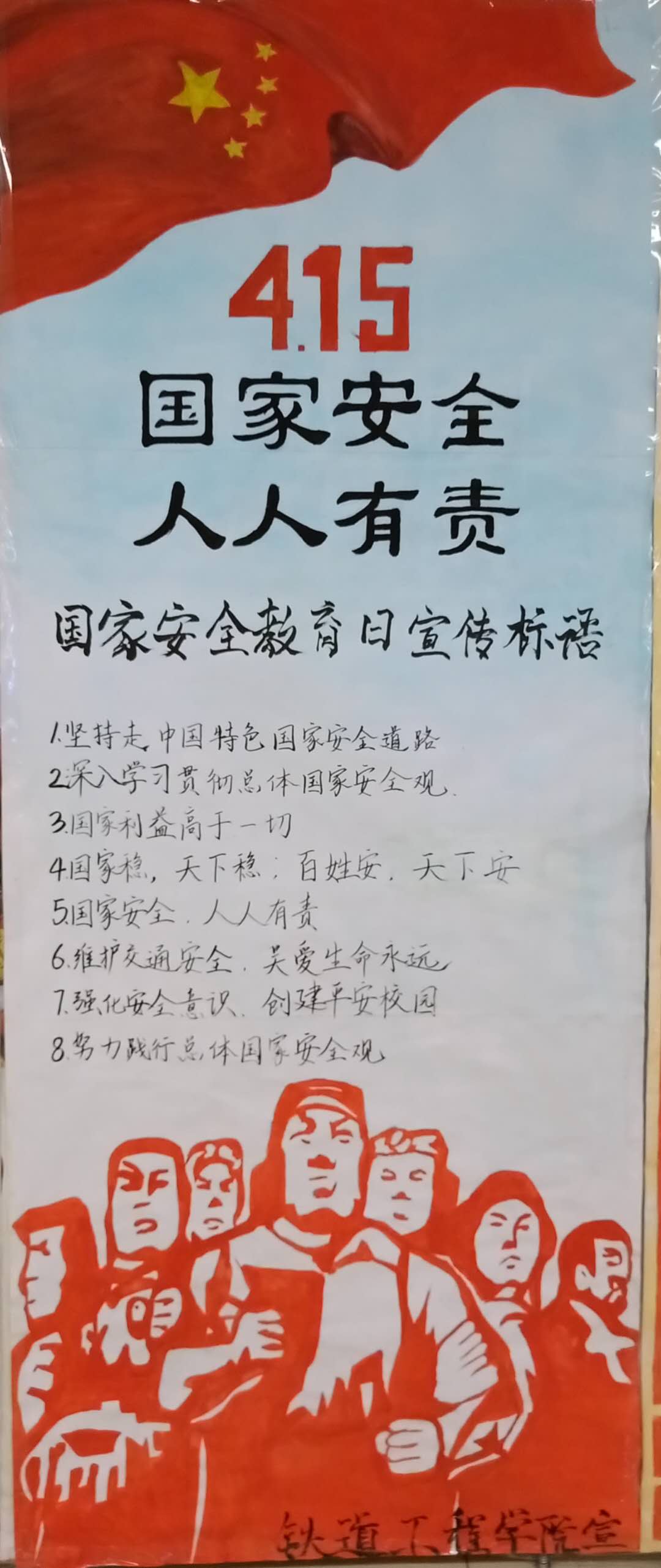 为深入贯彻落实学院2019年“4·15”全民国家安全教育活动方案要求,进一步增强学生自觉维护国家安全的意识,提高学生们安全防范能力,加强学习国家安全知识的主动性。铁道工程分院开展了一系列主题宣传教育活动。