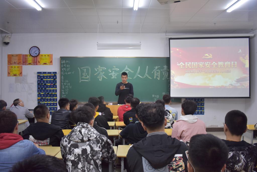 4月10日晚,在校生以班级为单位召开了“国家安全 人人有责”主题团课,播放反恐反间谍宣传教育视频,共同学习了《中华人民共和国国家安全法》。分院学生干部在听完学院“千万学生同上一堂国家安全教育课”后,深入到各班级分享心得体会,普及国家安全知识。