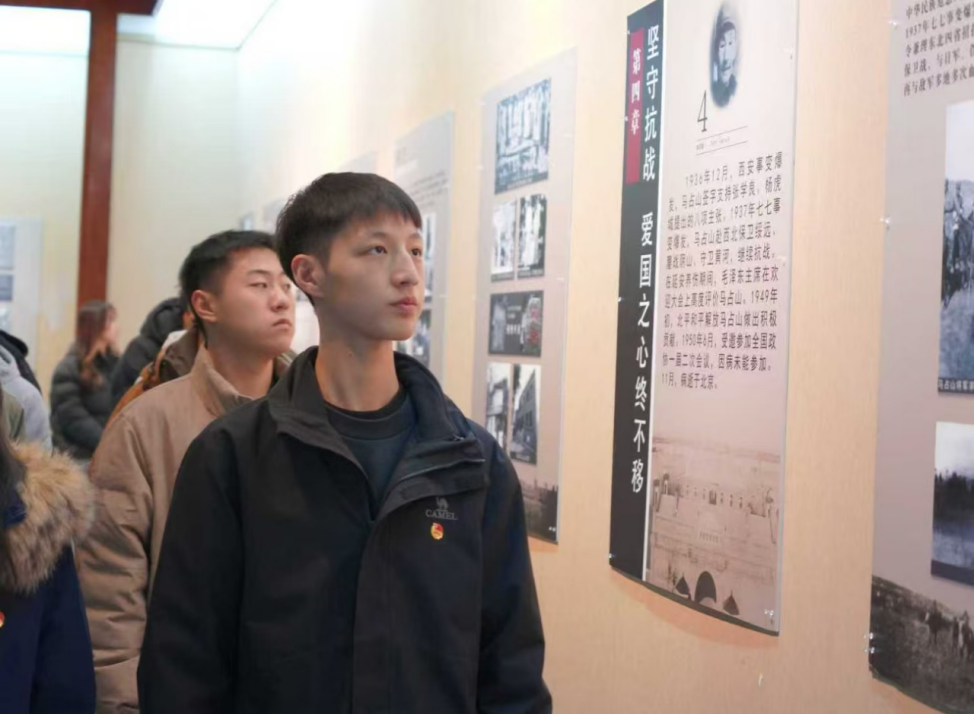 初冬的吉林市博物馆门前,铁道工程学院的青年学子们手持团旗、精神昂扬。步入展馆,泛黄的历史照片、珍贵的实物史料,瞬间将众人的思绪拉回吉林大地那段波澜壮阔的岁月——从早期革命组织在白山黑水间的萌芽,到抗日联军浴血奋战的烽火征程;从解放战争时期的红旗漫卷,到新时代吉林发展的蓬勃图景,展馆内的每一段文字、每一件展品,都清晰勾勒出这片土地的红色脉络与时代变迁。