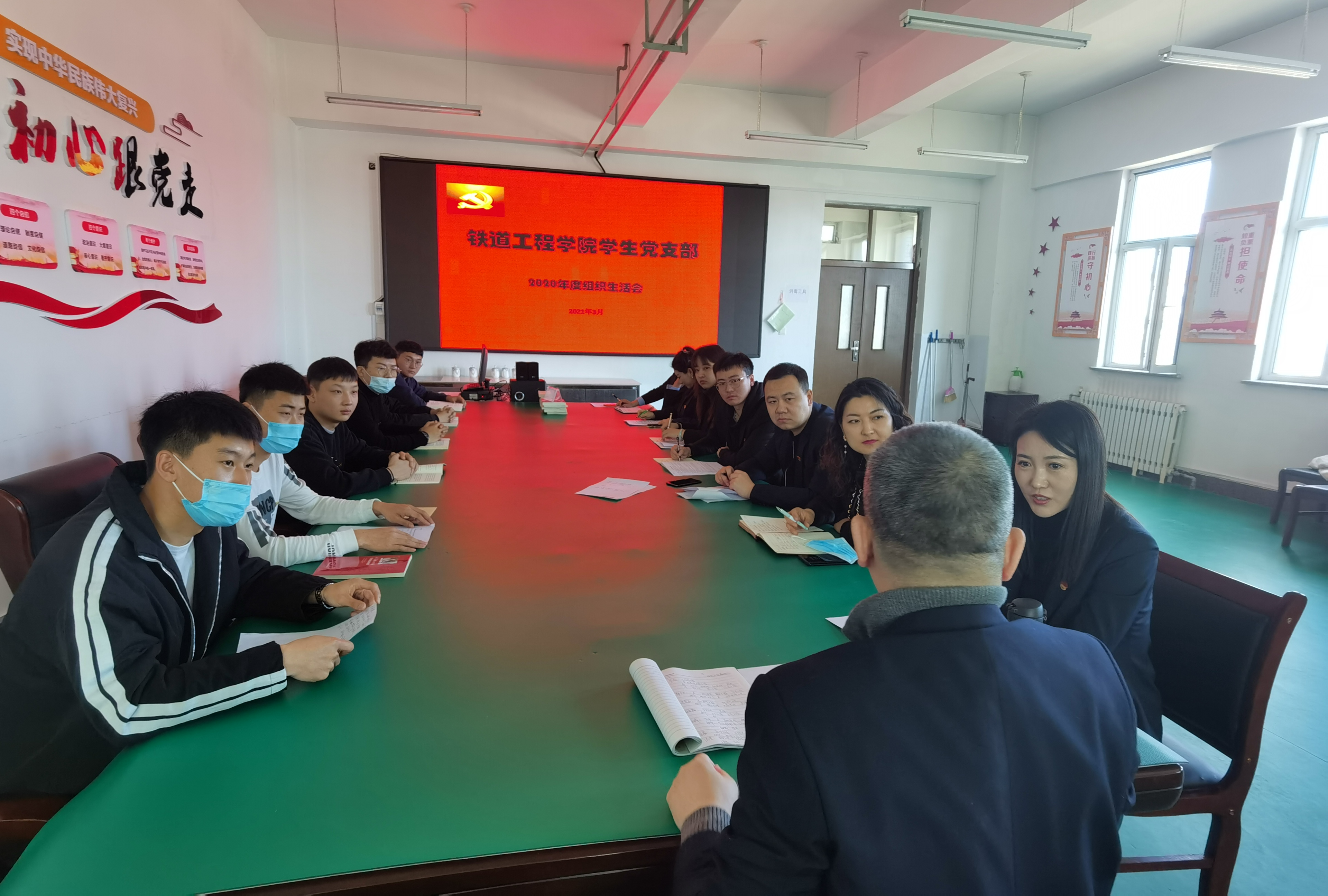 按照学校党委统一部署和安排,根据《中共吉林铁道职业技术学院关于召开2020年度基层党组织组织生活会和开展民主评议党员的通知》文件要求,铁道工程学院学生党支部于2021年3月17日上午在二号实训楼301召开2020年度党员组织生活会和民主评议党员会议,出席会议的有学生党支部全体正式党员,学生预备党员代表,分院院长徐光华为本次会议进行督导,大会由学生党支部书记于鹏主持。