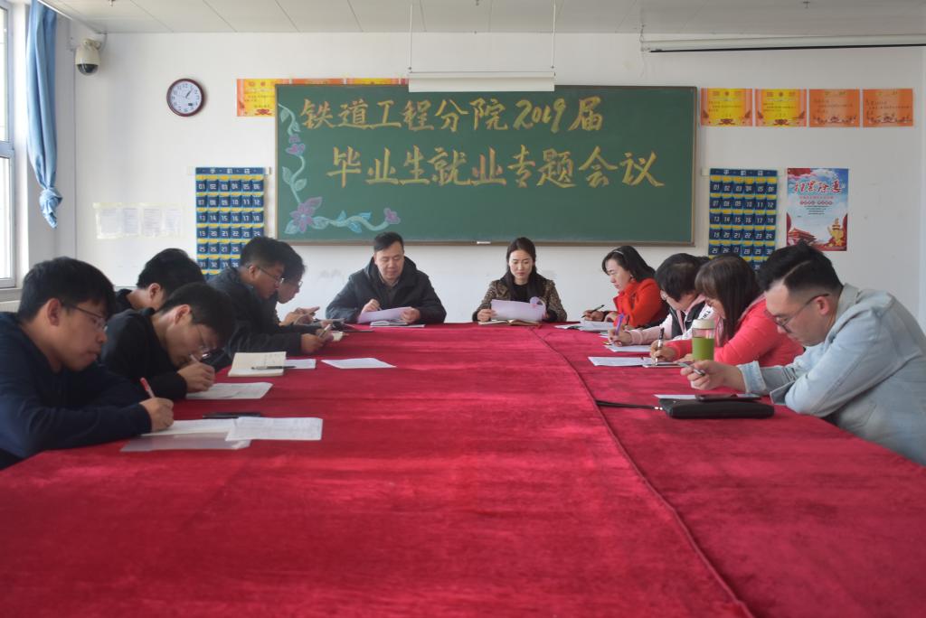 为贯彻学院2019届毕业生就业工作会议精神,进一步提升分院就业指导工作质量,铁道工程分院于2019年4月12日下午举办2019届毕业生就业专题会议,分院党总支书记韩兵兵、学办主任于鹏、辅导员王帅宇以及全体2019届毕业班班主任参加会议。会议由于鹏主持。