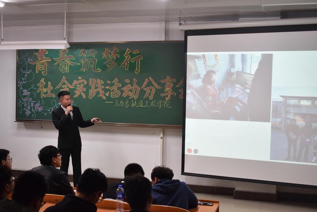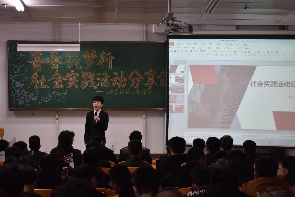 为积极贯彻落实学院“学习筑梦”行动方案,引导青年树立和践行社会主义核心价值观,培养学生做“有理想、有本领、有担当”的新时代青年。总结假期社会实践成果,促进同学们对社会实践的认识,增进各个团队之间的了解与交流,拓展眼界,提升能力,铁道工程分院于3月15日在教学楼西202举行“青春筑梦行”2018寒假社会实践活动分享会。本次活动由辅导员张坤老师,回鑫权老师和学生会干部担任评委。