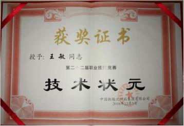 功夫不负苦心人,近年来,王敏频传捷报——2014年获得段业务知识大赛“技术标兵称号”;荣获第十八届职工技能竞赛客运系统“优秀选手”荣誉称号;2015年,获得吉林客运段业务知识大赛“技术能手”称号;沈阳铁路局第十九届职工技能竞赛“技术标兵”称号;2016年,获得吉林客运段业务知识大赛“技术能手”称号;2017年沈阳铁路局第二十一届职工技能竞赛客运系统决赛,荣获“技术技术标兵”称号。