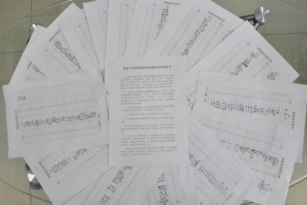 分院团委积极主动将诚实守信贯穿到分院精神文明建设中去,创新思路和方法,加强教育和引导,努力提高广大学生诚信意识,12月8日到13日,通过召开诚信考试动员大会、宣读诚信考试倡议书、召开诚信主题班会、签署诚信考试承诺书、张贴诚信宣传海报、通读《刑法(修正案九)》中新增的涉及考试工作的条款等形式开展系列教育活动,以实现铁道工程分院校风、学风、考风的新提升。