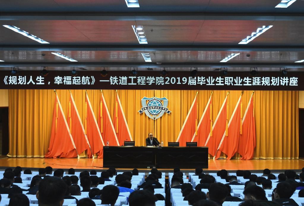 为提升大学生就业能力和就业意识,更好地明确职业方向和规划职业生涯,2018年11月9日铁道工程分院特邀请中铁九局集团第二工程有限公司劳资部副部长郭怀忱,在图书馆报告厅为2019届毕业生进行了一场职业生涯规划讲座,铁道工程分院党总支副书记韩兵兵、院长徐光华、学工办主任于鹏、辅导员王帅宇及2019届毕业生共同听取了本次讲座。
