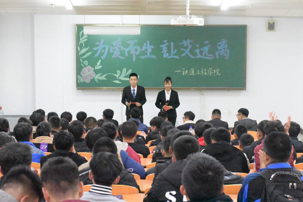在第30个世界艾滋病宣传日到来之际,为全面贯彻落实《吉林省遏制与防治艾滋病的“一三五”行动计划》,进一步做好高校防治宣传教育工作,引导青年学生提高对艾滋病的认识,宣传和普及预防艾滋病的知识,积极参与防艾宣传活动。10月24日下午铁道工程分院在西201阶梯教室举办了“为爱而生,让‘艾’远离”主题演讲比赛。分院辅导员张坤、回鑫权老师、学生会各部部长等担任评委及2018级学生代表参加本次活动。