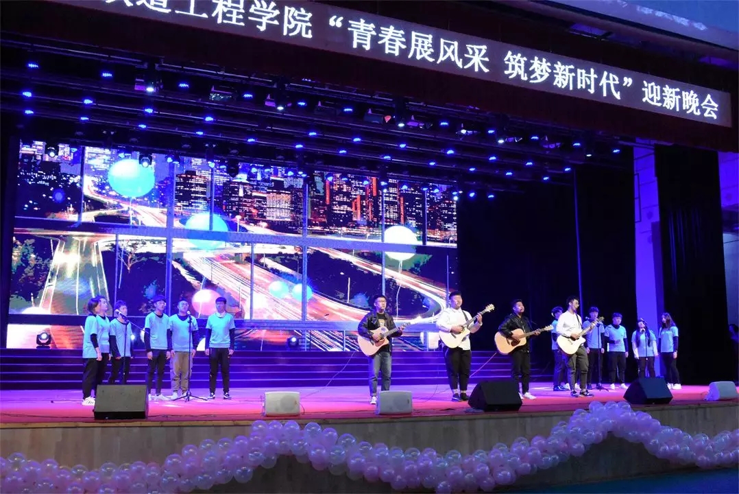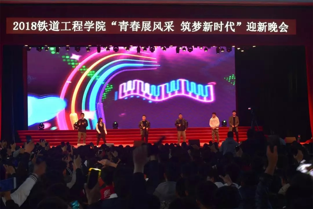 铸铁道发展,育大国工匠,师生朗诵《工程人 丝路情》由铁道工程分院院长徐光华和李春静老师领衔,激昂雄壮,气势磅礴,道出了铁道工程人的豪迈劲,颂出了铁院师生的精气神。晚会内容丰富多彩,小品《校贷风波》让学生们在捧腹中警惕校园非法贷款,相声《铁院奇谈》用笑点讲出了新时代铁院人的铁道精神和工匠精神;师生联唱中关森、封文静、王帅宇三位老师一改平日里治学严谨,雷厉风行的作风,与学生联袂为新生深情献唱,拉近了师生间的距离。情景剧《铁道英雄志在四方》感人至深,以历史为轴,时间跨度四十年,为新生诠释了老一辈铁道工程的豪情与气概,内容发人深思,情节令人动容,可谓笑点与泪点并存。此外,分院团委书记张慧茹的即兴献唱、学生酷炫的街舞表演,深情的歌曲联唱等都饱含了铁道工程分院师生的梦想、憧憬和浓浓的爱校情怀,深受同学欢迎,整场晚会生动诠释了“青春展风采 筑梦新时代”这一主题。”