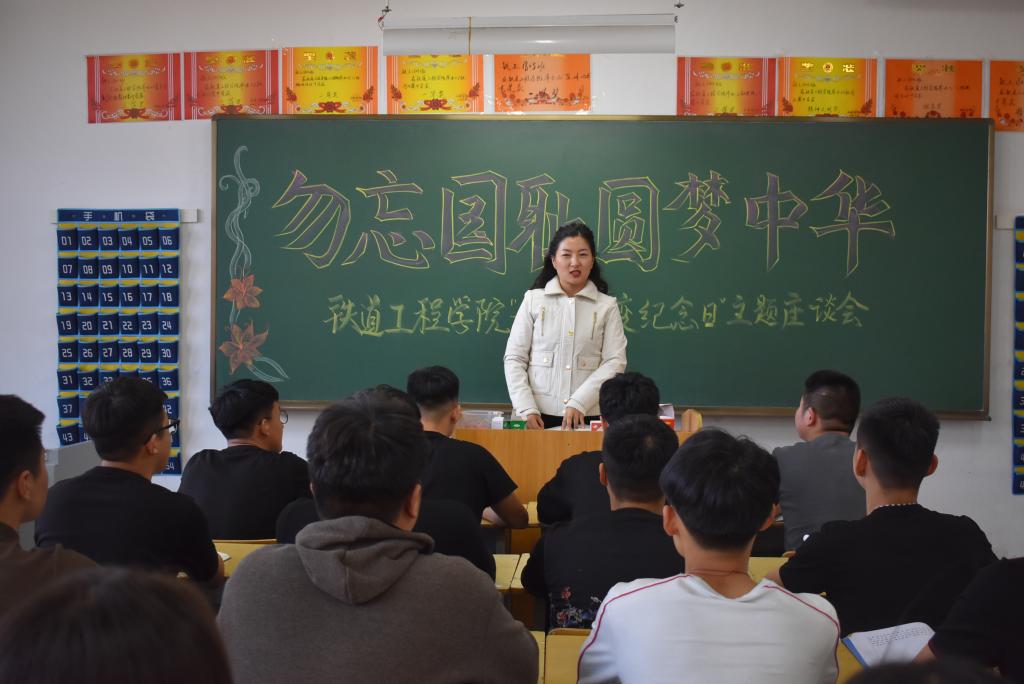 为纪念“九一八”事变87周年,铁道工程学院特组织开展"纪念九一八"爱国主义主题教育活动,让学生通过活动了解历史、感知历史、铭记历史,深刻认识和平的来之不易,牢记历史,勿忘国耻,9月17日下午,铁道工程学院开展“勿忘国耻 圆梦中华”纪念“九一八事变”座谈会,17级、18级学生代表到场参加,团委书记张慧茹主持本次活动。