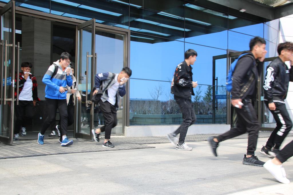 中午12点,哨声突然响起,学生们迅速有序的跑出教室,在老师和分院学生会保卫部组织下,学生们用手帕捂住口鼻,沿着不同安全通道,紧张有序地向安全地带撤离,仅用时不到3分钟,全体同学撤离到了指定位置。大家集合完毕后,张慧茹书记对本次活动进行了详细点评,指出本次演练的不足之处,张书记表示,这不仅是一场消防演习,更是对同学们心理素质训练和逃生技能的提升,铁道工程分院始终把安全教育工作放在首位,将安全教育渗透到日常教育教学的各项活动中,做到警钟长鸣。