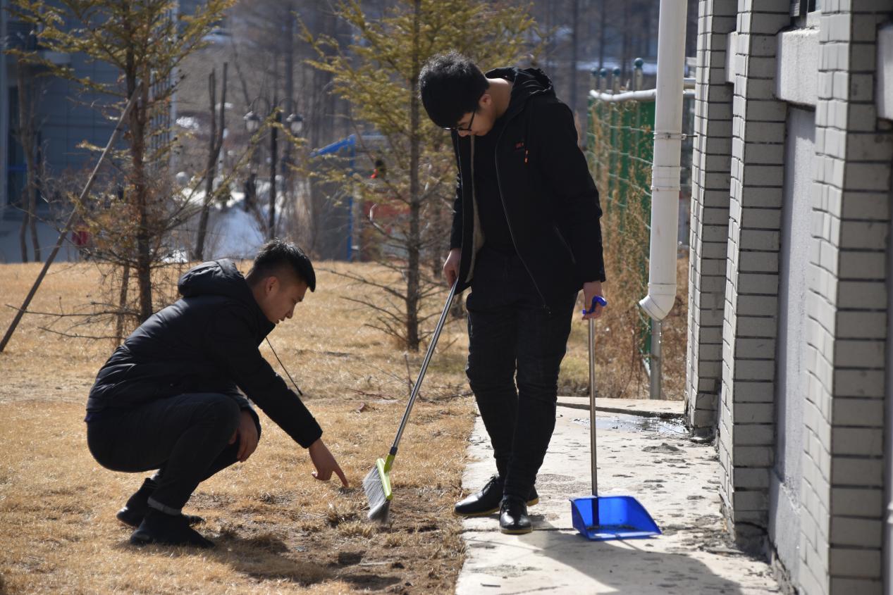 活动开始,在分院团委组织部部长李庞博的指挥下,志愿者们手拎垃圾袋,拿着扫除工具扫帚和铲子等,小心翼翼的进入草坪,眼睛专注地盯着地面,沿着各公寓外围弯腰拾捡废弃物、纸巾、果皮以及食品袋等各种垃圾。尽管由于积雪逐渐融化、草地松软清理工作异常艰难,但是志愿者们不怕苦、不怕累、不怕脏,哪里最难清理,哪里就有他们的身影,不一会儿就捡了满满一袋垃圾,充分的体现出了志愿者们无私奉献、任劳任怨的志愿精神。还有一些志愿者向路过的学生开展环保宣传,向全校学生发出“从我做起,美丽校园共建共享”的号召。在活动中,大家热情高涨,形成人人为绿色环保作贡献的浓厚氛围。活动结束的时候,志愿者们都“满载而归”,将拾捡的垃圾进行分类投放到垃圾箱中。公寓周围重新变得干净整洁,志愿者们的行为赢得路过师生赞赏与好评。