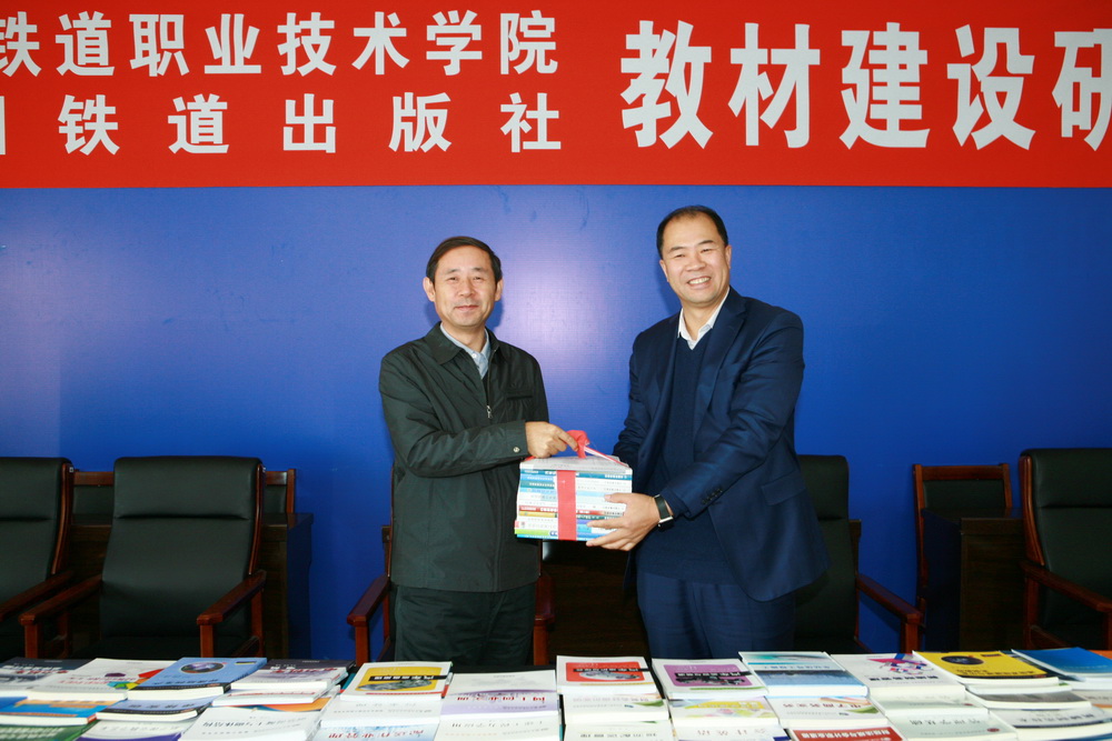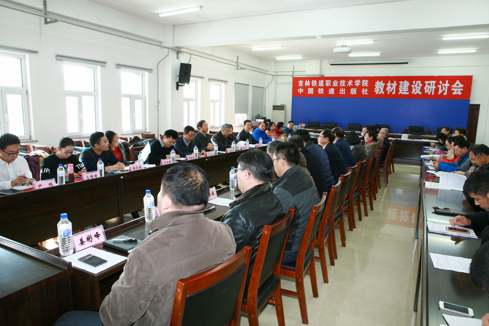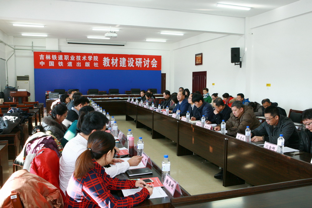 11 月22日 下午,由中国铁道出版社和我院共同主办的教材建设研讨会在学院办公楼五楼会议室举行。中国铁道出版社刘忠民书记、吴和俊副社长以及6位副主任、5位编辑,沈阳发行分部刘玉龙主任,我院曹炳志院长、王华副院长以及教务处处长、实训中心主任、图书馆馆长、各系部主任、系办主任、骨干教师代表和有出书意向的教师代表参加了本次研讨会。会议由王华副院长主持。