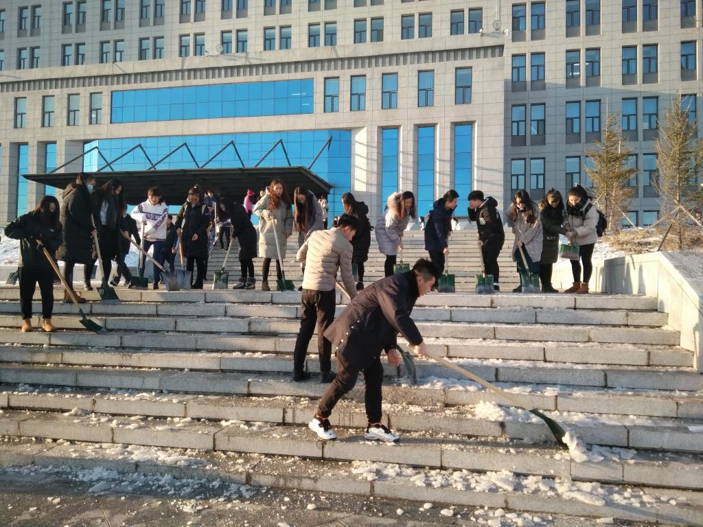 可以说同学们是用青春的热情融化冰雪,用无私的奉献驱散严寒,用美丽的微笑温暖师生,让全院师生为志愿清雪除冰的同学们点赞。