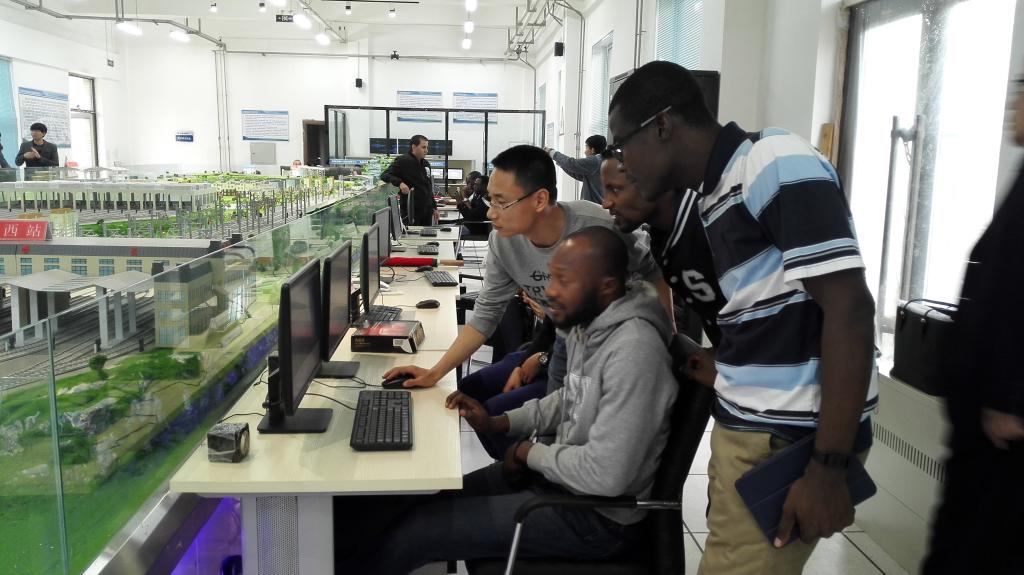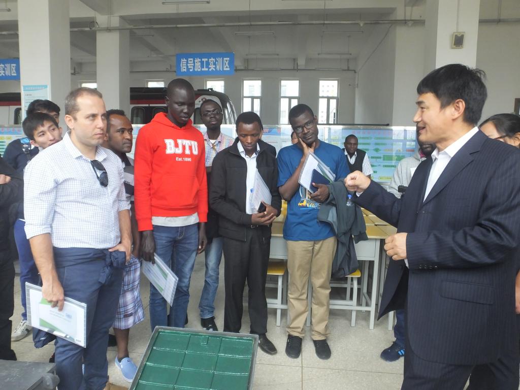 “北京交通大学铁道交通工程(铁道运营管理)英文硕士”班的16名学员是由分别来自阿尔及利亚、埃塞俄比亚、巴西、加纳、卢旺达、柬埔寨、南苏丹共和国、泰国、委内瑞拉、肯尼亚等十个国家。作为培养铁路管理人才的项目班,此次在我院的专业实践活动包括校内专业实践教学、校外现场实践教学等。