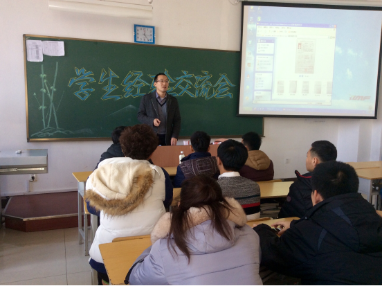 交流会开始,辅导员孙巍老师对同学们讲述了学习的重要性,并给同学们展示了大三某位同学的简历,简历中有三年的成绩单,他对学生们说:“你们看到的成绩标记很清晰,有优秀,有及格,还有的不及格补考过了之后还有一颗小星星,这会对将来的就业产生影响,所以一定要重视学习,重视期末成绩,为将来的就业打好坚实的基础”。之后,大二的各科状元与同学们交流了学习经验,其中2014-2015学年度第二学期全系第一名徐鼎富同学传授了自己的学习经验及时间安排,告诫在场的各位学弟学妹们,对期末考试重视起来,仔细认真对待各科老师给你们画的重点更要认真听课,认真复习。