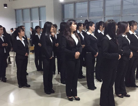 首先全体女生站成方队,针对站姿进行训练。刘虹云会长提出了规范的要求。在一次次的强化训练后,学生们的站姿越发挺拔,有了明显的提高和改善。紧接着进行了微笑、走姿等规范练习,之后同学们进行了单独培训,培训中,指导老师为她们指出问题,并教导如何改正。最后进行坐姿的培训,老师将成员划分为十组,每组六人,进行正坐式、斜坐式、斜叠式、前伸后屈式以及交叉式的基本练习。