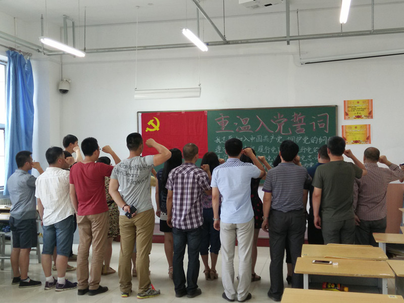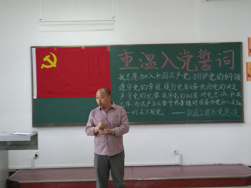 为深入贯彻学院党委关于“学党章,讲规矩,守纪律”教育活动方案的要求,进一步增强党员的党性修养。铁道工程系于2015年6月17日中午在教学楼205开展全体党员重温入党誓词活动。会议由铁道工程系党总支书记马建华主持。
