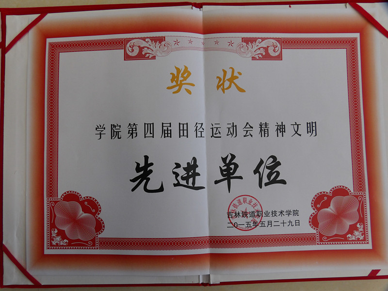 吉林铁道职业技术学院第四届田径运动会在雨中落下了帷幕铁道工程系取得了一年级男子团体第三名,二年级男子团体第二名,运动会精神文明先进单位。