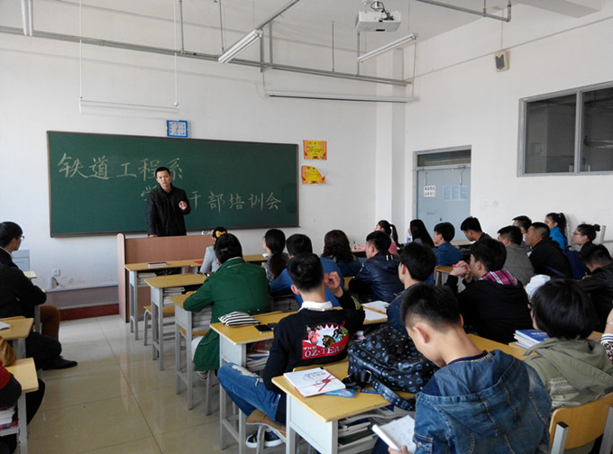 为加强学生干部与同学之间的交流沟通,使学生工作进一步深入到了学生当中,促进我院学生工作更好的发展。2015年4月22日中午,铁道工程系开展学生干部培训会,参加本次培训的有铁道工程系辅导员蔡丽梅老师、李哲老师、魏嘉良老师,铁道工程系全体副部级以上学生干部。