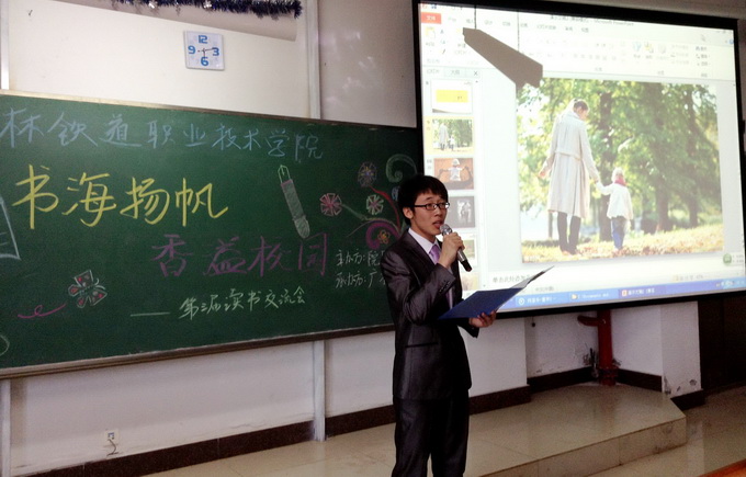 立身以立学为先,立学以读书为本。为激发学生读书兴趣,拓宽学生知识层面,在读书实践活动中陶冶情操,获取真知,树立理想,使学生自觉养成多读书、读好书、好读书的良好习惯,根据学院第二届“我的中国梦·书香铁院”读书节活动安排通知,学院团委于5月27日在教学楼东201举行读书交流活动。 该项活动作为学院书香铁院读书节系列活动之一得到了学院领导的高度重视以及各系部的大力支持,铁道信号系党总支书记林红东、铁道信号系学办主任于威以及各系辅导员老师莅临本次活动并担当评委。