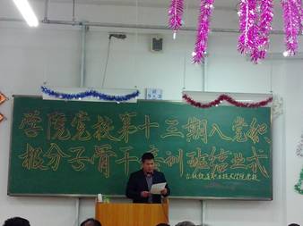 1月6日,由学院举办的2013-2014学年第十三期入党积极分子骨干培训班结业典礼在教学楼东201隆重举行。学院党委书记于俊秋、党委副书记曹炳志、院组织部部长田雷、院团委书记盛继前及各系学生支部书记、培训班全体学生参加了本次结业式。