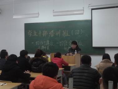 1月2日,在我系教学楼216教室开展了第四次学生干部培训。此次培训班邀请了在中铁九局实习的我系上届学生会秘书长、2011级高速专业的梁林就自己的学生干部经历及实习体验与2013级的各班班长、团支书、秘书处的全体成员进行了90分钟的座谈。