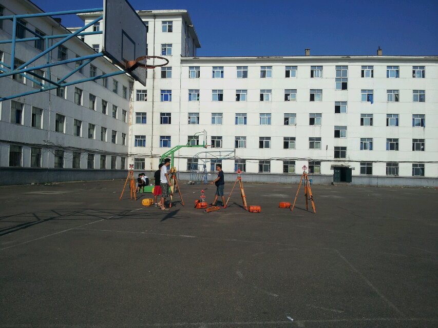 我系学生在西校篮球场进行测量准备
