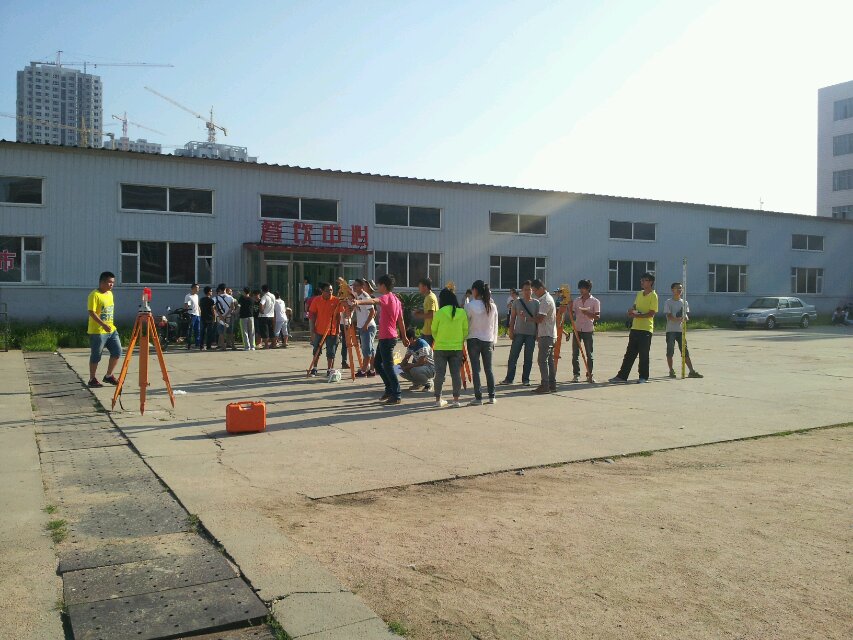7月18日,天气晴朗蔚蓝、云淡风轻,8点整,工程系参加测量实习的2012级铁工、道桥、高速、城轨四个专业学生已开始进行测量实习的准备工作,在三个校区的12个班各自的班级,由实习指导教师开始进行测量实习动员,指导教师介绍了测量实习具体安排、测量任务,并宣读了测量实习的安全教育条款,安全教育动员结束后,各班逐个有序地进行全站仪、水准仪、单棱镜、花杆、对中杆、卷尺、卡尺、钢尺等仪器的领取工作,在指导教师的带领下,整队勘察了所要测量的区域后,按小组分好区域,明确测量任务,至此,工程系的测量实习正式开始。