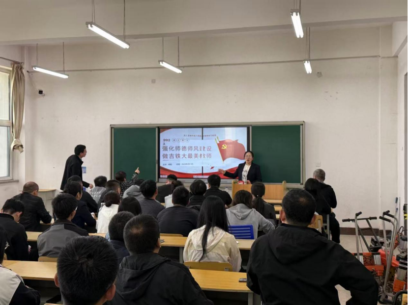 最后,韩阳强调,广大党员教师要提高政治站位,深刻认识到师德师风建设与廉洁教育的重要性,不断强化自身的责任感和使命感;要严守纪律规矩,筑牢廉洁自律的思想防线,做到依法执教、廉洁从教;要以高尚的师德、扎实的学识、无私的爱心,践行教育初心,争做学生爱戴、家长信赖、社会满意的“吉铁大最美教师” 。