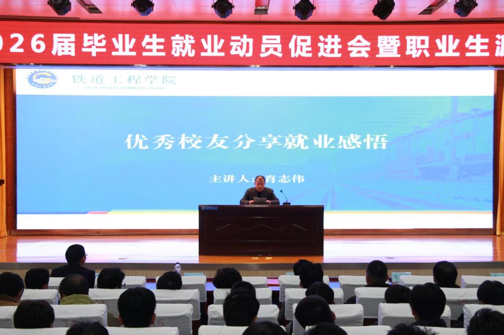 10月22日,铁道工程学院于图书馆报告厅隆重召开2026届毕业生就业动员促进会暨职业生涯发展经验交流会。会议由学院党总支副书记韩阳主持,学院领导班子成员、全体学工、2026届毕业班班主任、2026届毕业生参加。