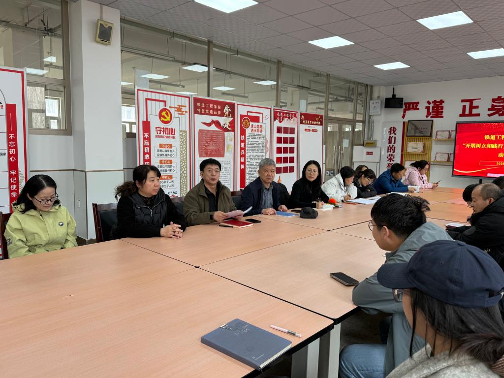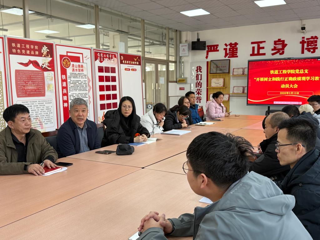 2026年3月13日,铁道工程学院党总支召开“树立和践行正确政绩观学习教育”动员大会。党总支书记付德才主持会议,院长徐光华作动员讲话,学院全体党员教师参加会议。