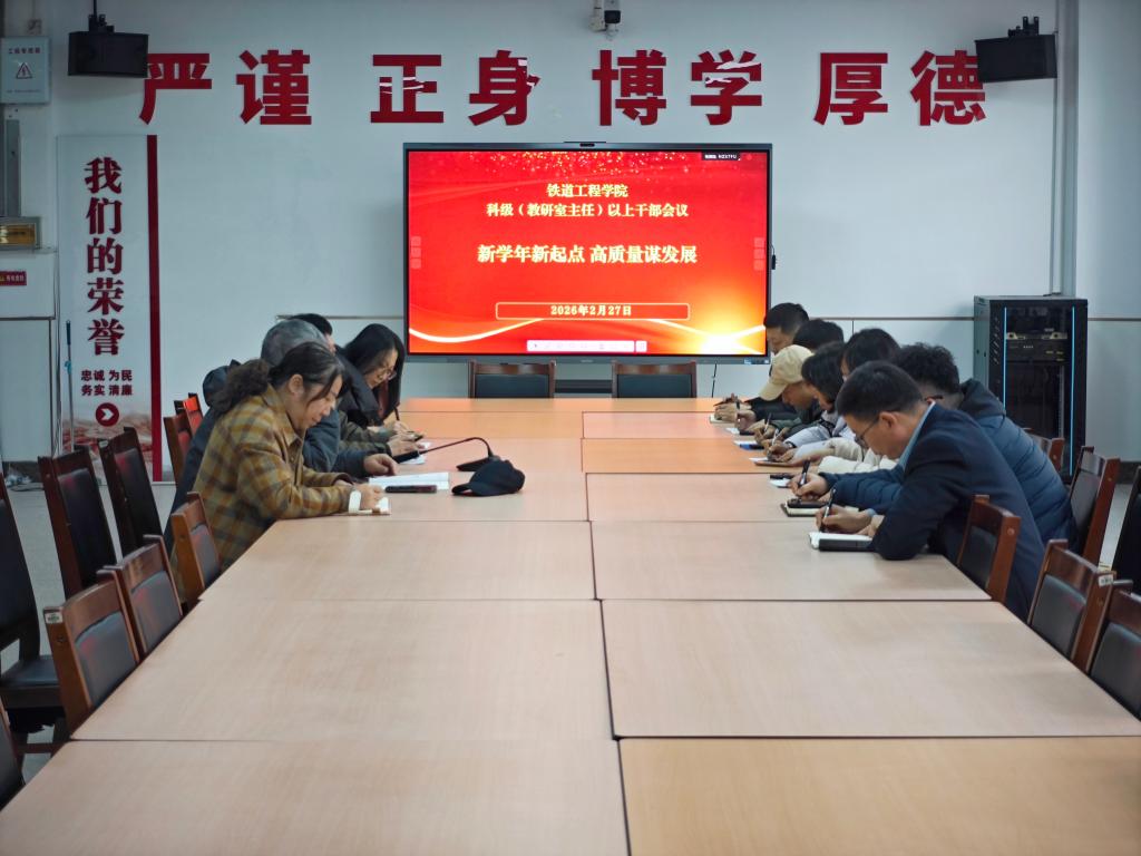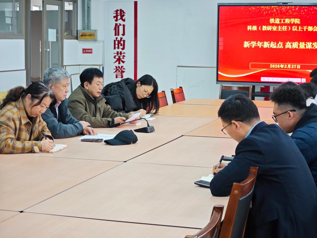 2月27日,铁道工程学院在3号实训楼204会议室召开理论学习中心组(扩大)会议。会议由学院党总支书记付德才主持,学院领导班子及全体科级以上干部、教研室主任参会。