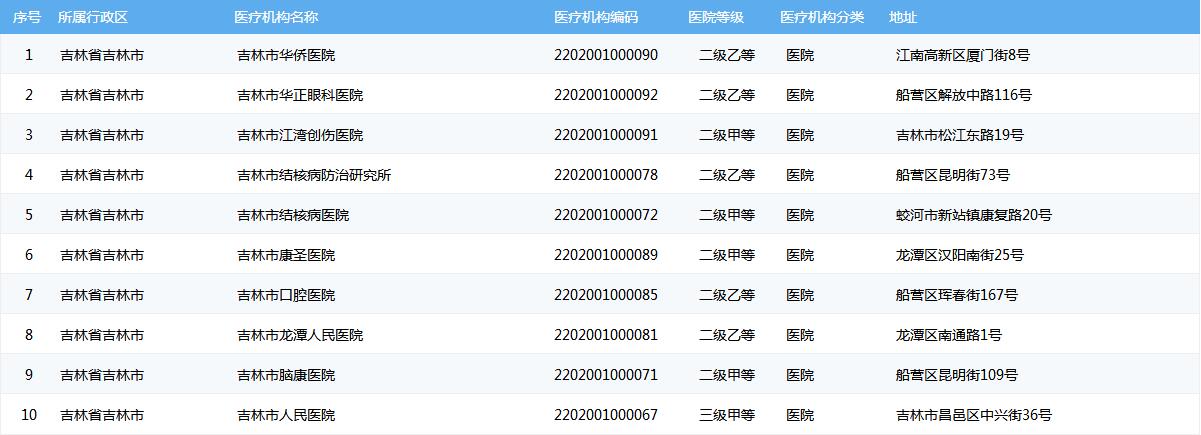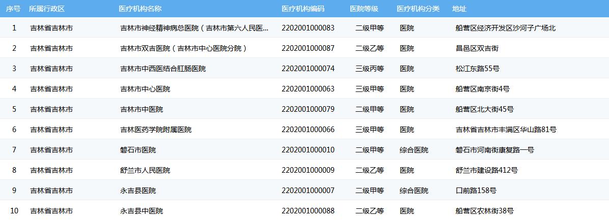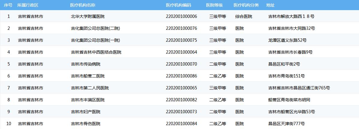 吉林市医保定点医院