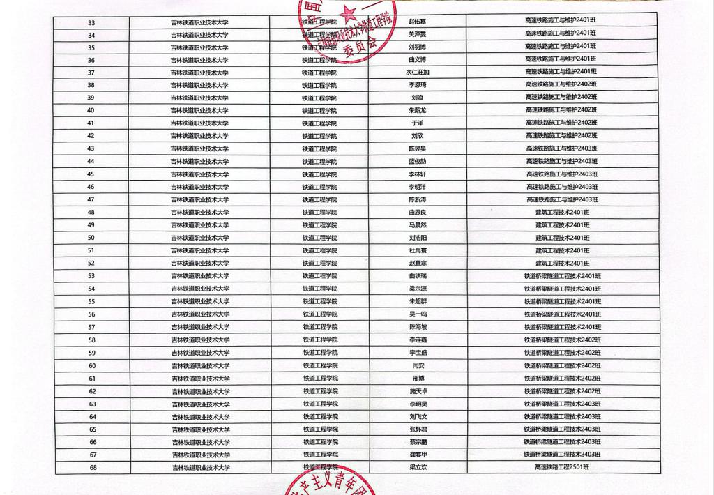 中国共产主义青年团吉林铁道职业技术大学铁道工程学院委员会